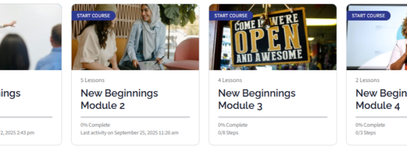 We warmly invite you to explore the platform and take advantage of these free learning opportunities. Whether you are building your own business or supporting others on their entrepreneurial journeys, the New Beginnings Learning Platform is here to help.
